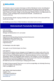 | Spezifikation | Selbsteinschaltung inklusive Firmenlogo | Logointegration & Branding im individualisierbaren Template | plus Veröffentlichung für weitere Bewerbungszugänge auch auf jobboerse-sanitaer-heizung-lueftung.at, ingenieurweb.de, Stellenanzeigen.tech und führenden Jobsuchmaschinen |